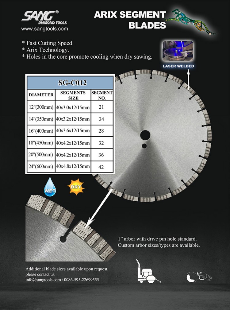 نصيحة SANG: تحقق دائمًا من توافق المنشار الخاص بك مع القطع الجاف أو الرطب واختر الشفرة وفقًا لذلك.