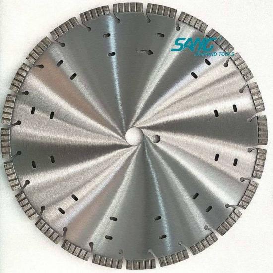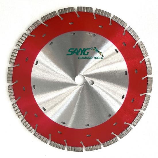 قطاعات الماس التوربيني: الشفرة مجهزة بقطاعات توربو مدمجة بالماس الصناعي. تتميز شرائح Turbo بتصميم حافة مسننة أو متموجة تساعد على تحسين سرعة القطع والكفاءة مع الحفاظ على المتانة.